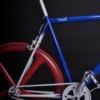 first fixie of XECC custom bikes. special about this bike are the three-color powder-coated frame, the anodized paul brake levers and the custom aerospoke wheels.