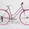 based on a 30 year old steel frame XECC has transformed this bike into a “lady’s shopping dream”. pink, white and silver. photos by michaelauer.ch